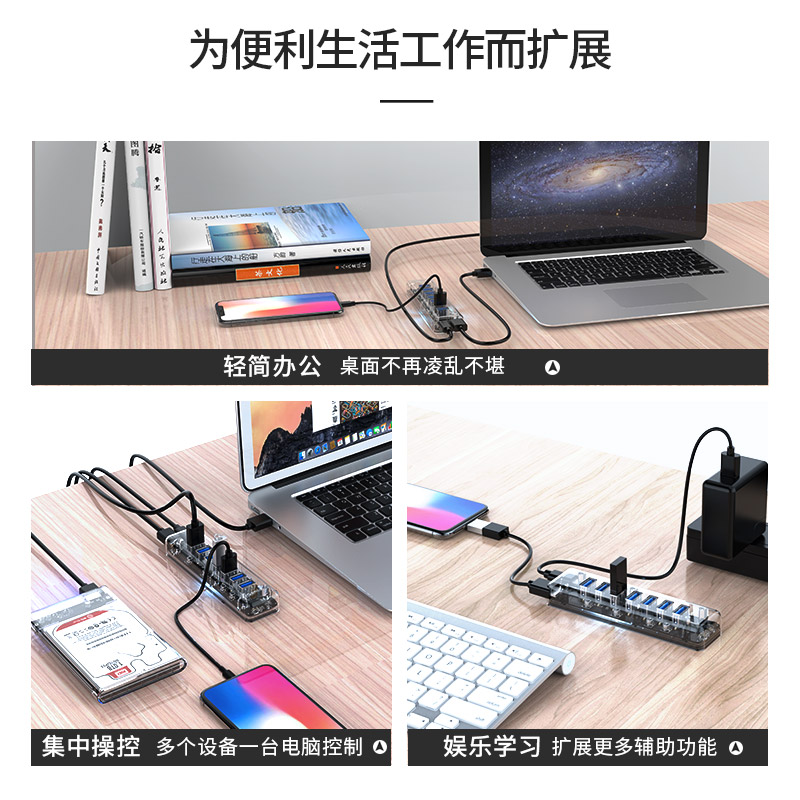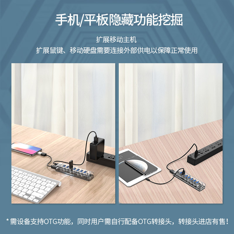 ORICO Extension Cord 7 Port USB Full Transparent Hub Pen Electric Converter One Tug Seven Augers HUB