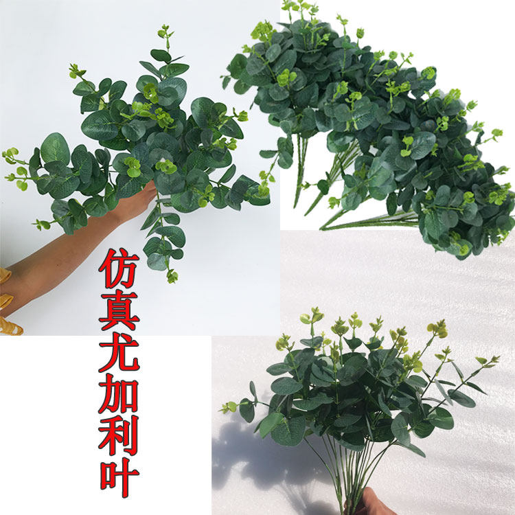 Emulated olive branch leaves winter green Eugali green plant wedding hall floral material silk wall road leading wedding celebration flower arrangement straw pole