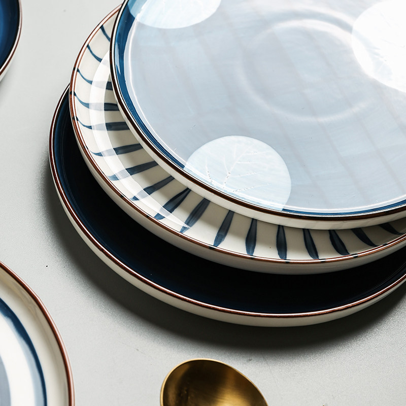 Shari Japanese vintage hand-painted ceramic steak Western plate Dish plate Flat plate disc Breakfast dessert Salad Swing plate