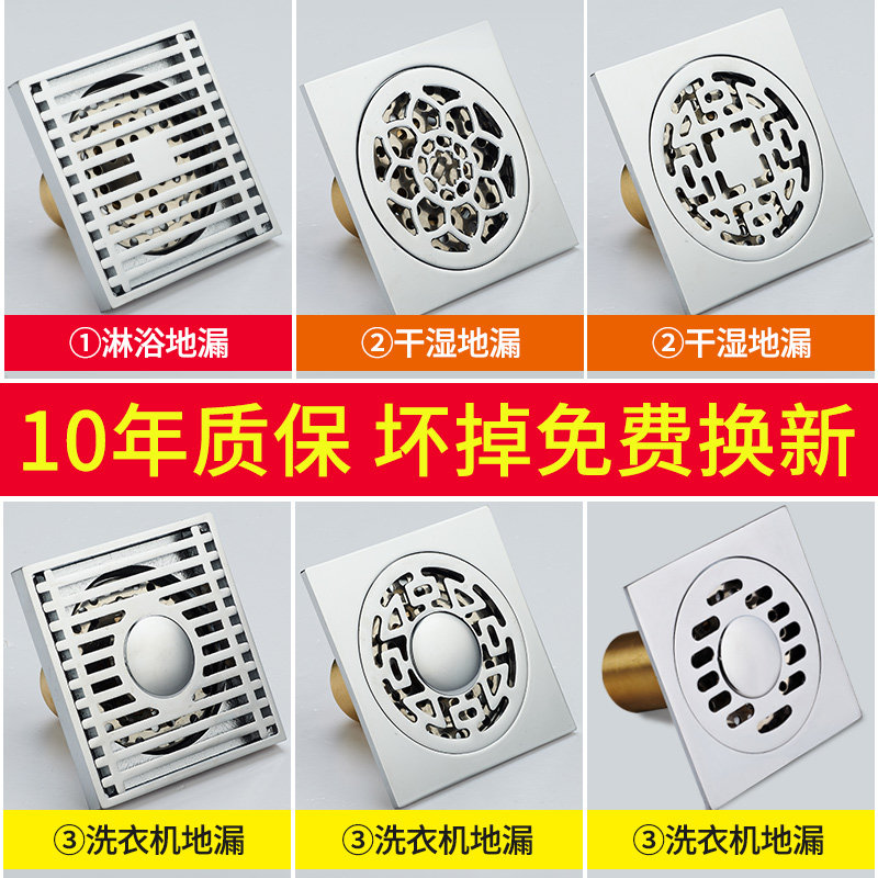 Shower area floor drain (full copper thickened) dry and wet area washing machine dual-purpose floor drain delivery elbow (full copper thickened) kitchen and bathroom general floor drain (full copper lotus) dry and wet area washing machine dual-purpose floor drain delivery