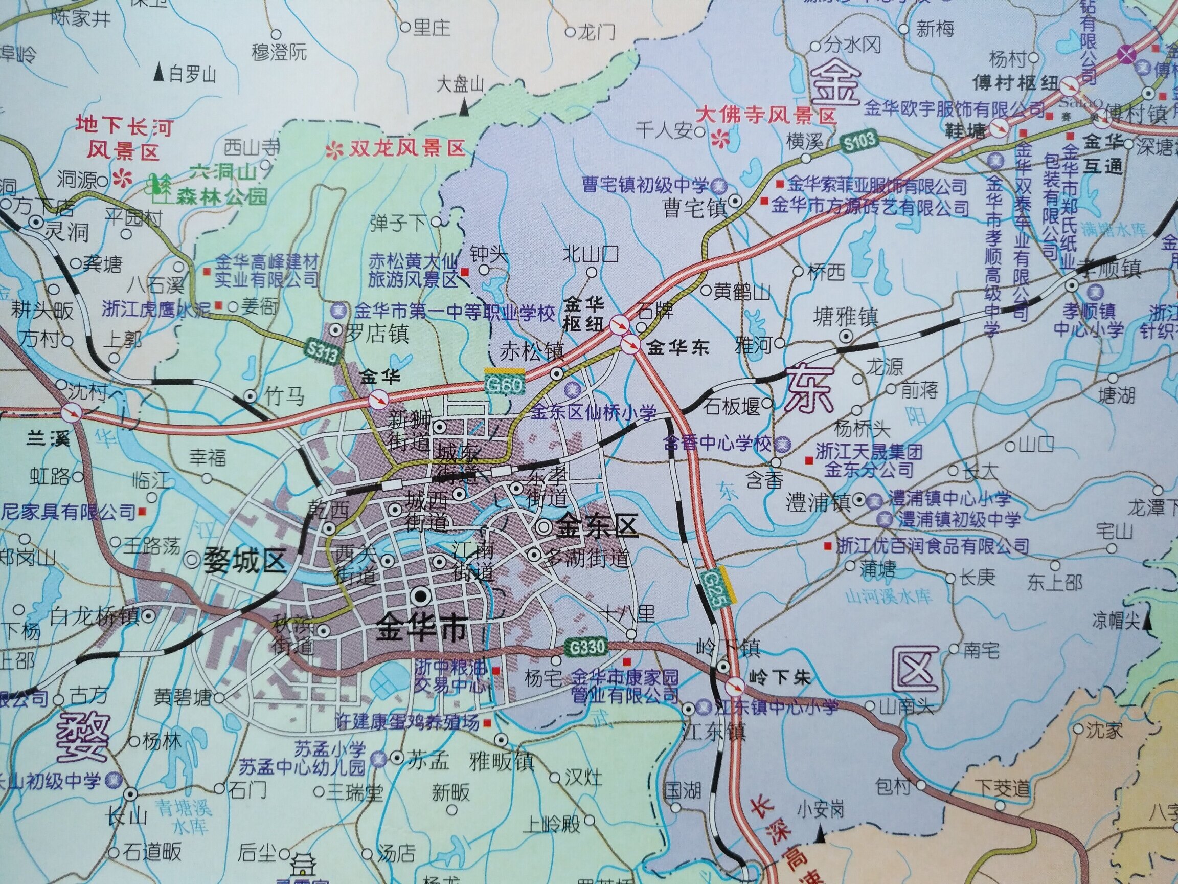 Jinhua City Business Traffic Map 58 by 84CM Jinhua Map Jinhua City Map Jinhua Tourism Map