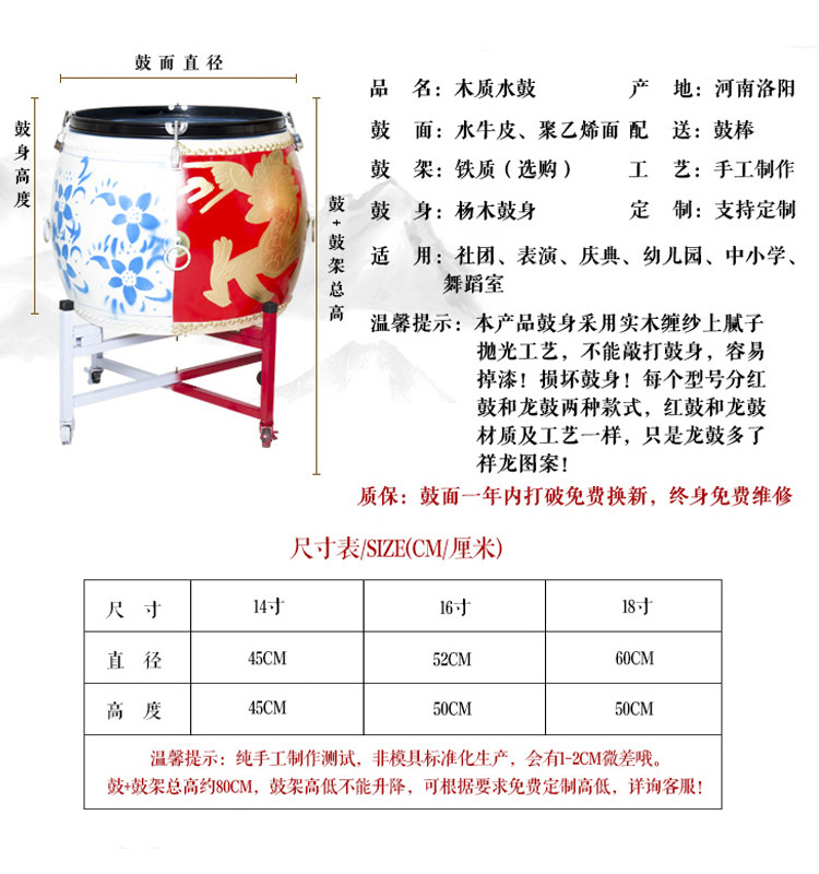 14 inch red golden dragon water drum red drum stand 14 inch blue and white golden dragon water drum two-color drum stand 14 inch white blue and white porcelain drum white drum stand 16 inch red golden dragon water drum red drum stand 16 inch blue