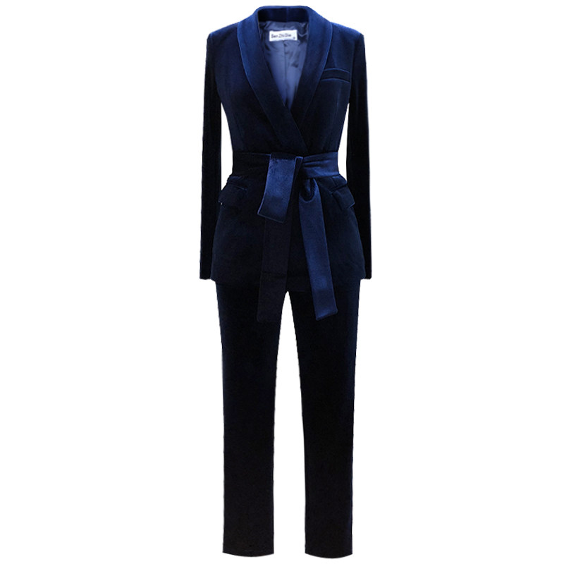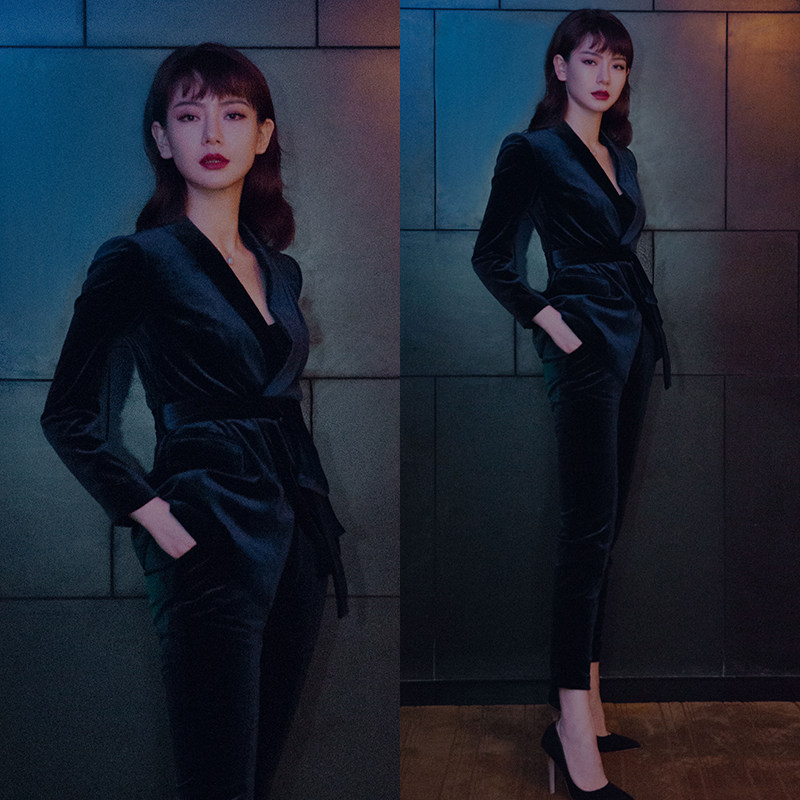 Gold velvet suit jacket women's spring and autumn belt thin temperament socialite professional high sense fried street suit suit