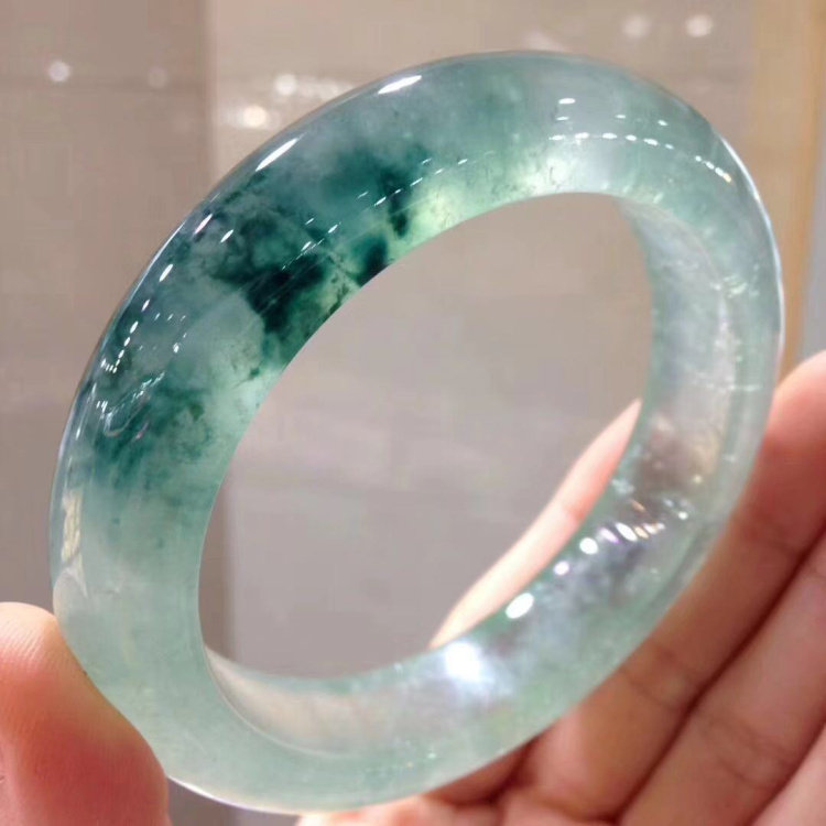 Ice seed natural emerald bracelet wide version floating flowers jade bracelet high-end Myanmar A cargo lady bracelet with a round bar jade bracelet