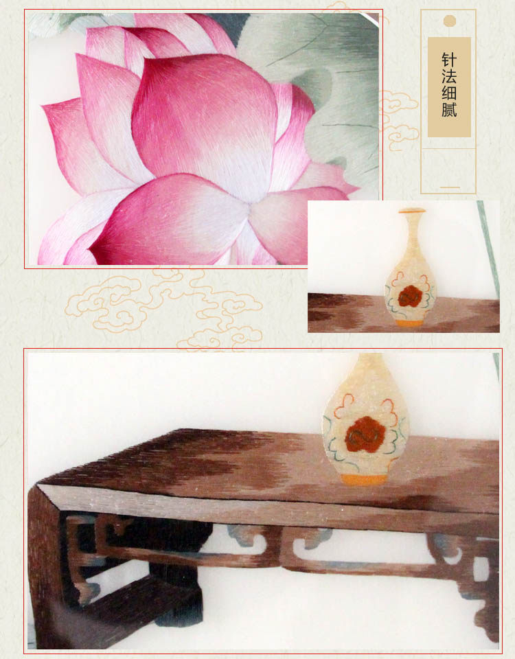 Hunan Embroidery Boutique Lotus Living Room Bedroom Decorative Painting Pure Handicraft Embroidery Hanging Painting Art Craft Gift Decoration
