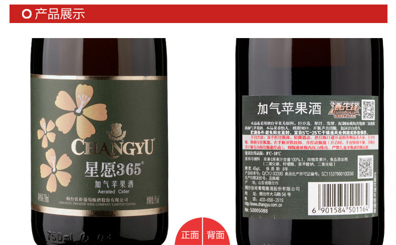 Zhang Yu Foaming Wine Star Willing 365 Aerated Apple Wine Gathering Wine Lady Wine Champagne Bubble 750ML Single Support