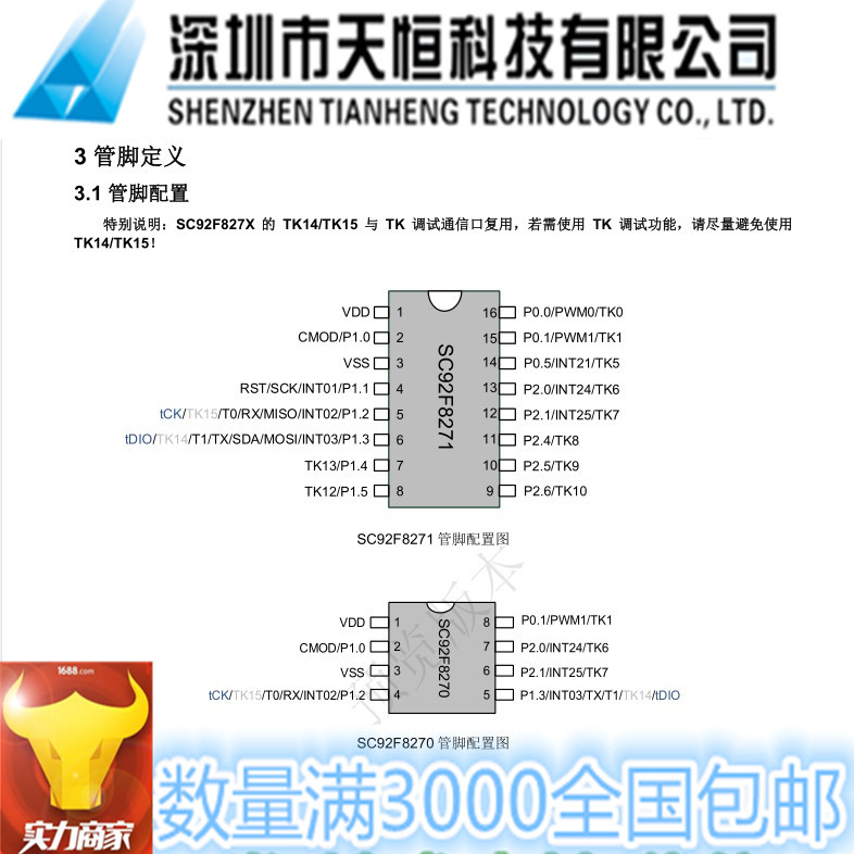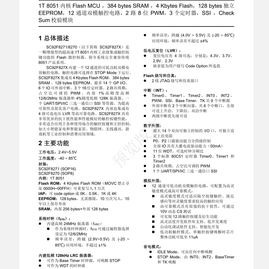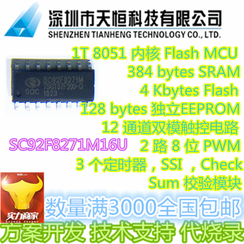 Single chip solution development 4KFLASH touch chip touch button MCU SC92F8270M08U