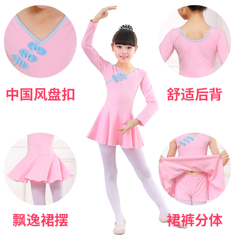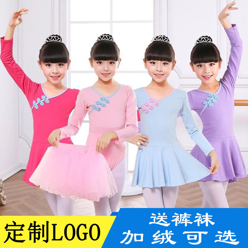 Autumn and winter children's dance clothes girls practice clothes long-sleeved plus velvet female tutu body Chinese dance gymnastics clothes