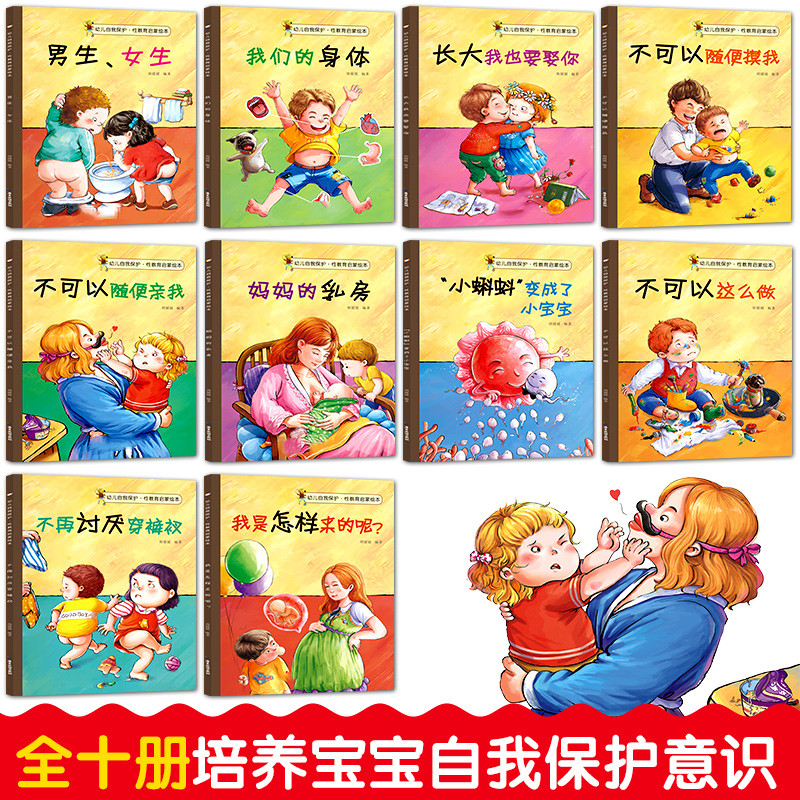 Self-protection awareness training Sex education Picture books Safety enlightenment Baby early education Children's books Kindergarten teaching materials A total of 10 books Safety education picture books Our bodies Boys and girls grow up Please don't just touch me and kiss me