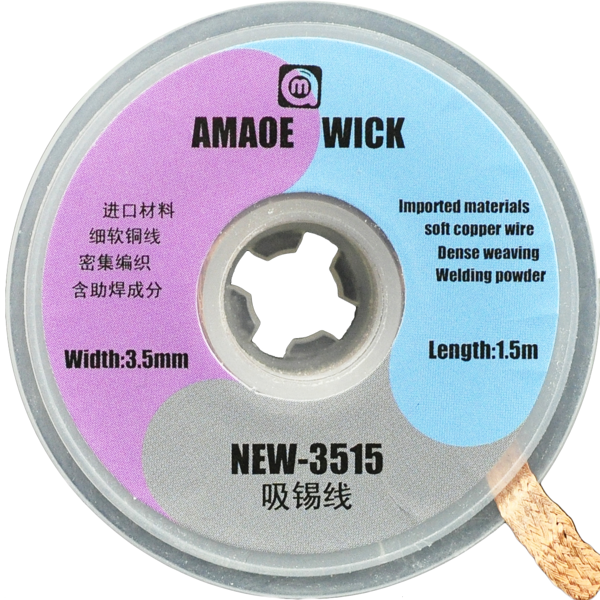 AM-2015 Tin-absorbing wire (width 2mm) AM-2515 tin-absorbing wire(width 2 5mm)AM-3015 tin-absorbing wire (width 3mm)NEW-1515 Tin-absorbing wire (width 25mm) AM-3015 tin-absorbing wire (width 3mm) NEW-1515 Tin-absorbing wire (width 3mm) NEW-1515