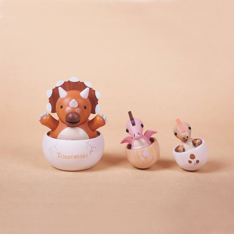 Jeancard Wooden Dinosaur Tumbler Ornament Vice Ctenosaurus Cartoon Cute Baby Children Toys Healing Gift