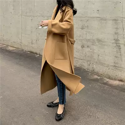 2021 autumn and winter new double-sided cashmere coat women's long version profile loose thick 100% wool woolen coat