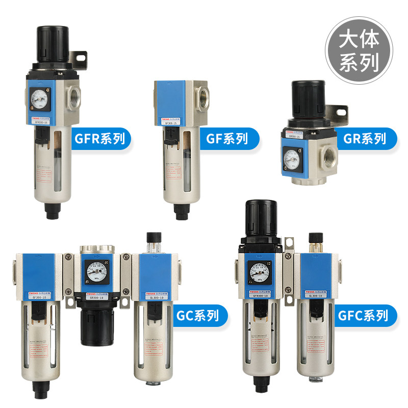 Pressure regulating GR200-08 two points, pressure regulating GR300-10 three points, pressure regulating GR400-15 four points, filtering GF200-08 two points, filtering GF300-
