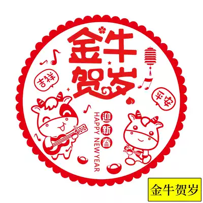 30#Window grille stickers 2021 Year of the Ox glass stickers New Year's Blessing door stickers stickers cut electrostatic stickers Spring Festival New Year decoration
