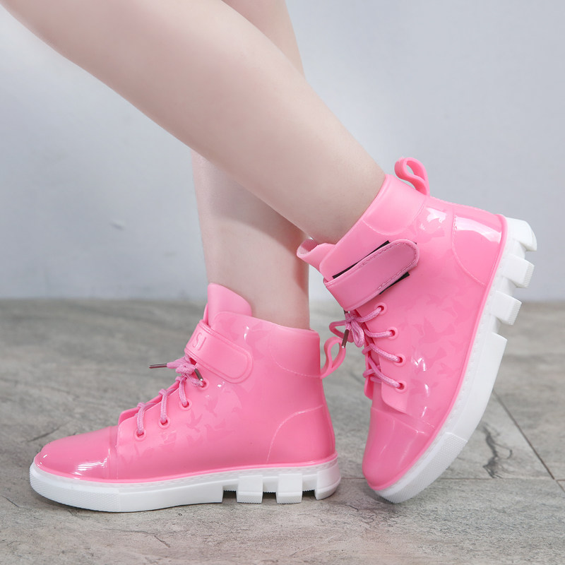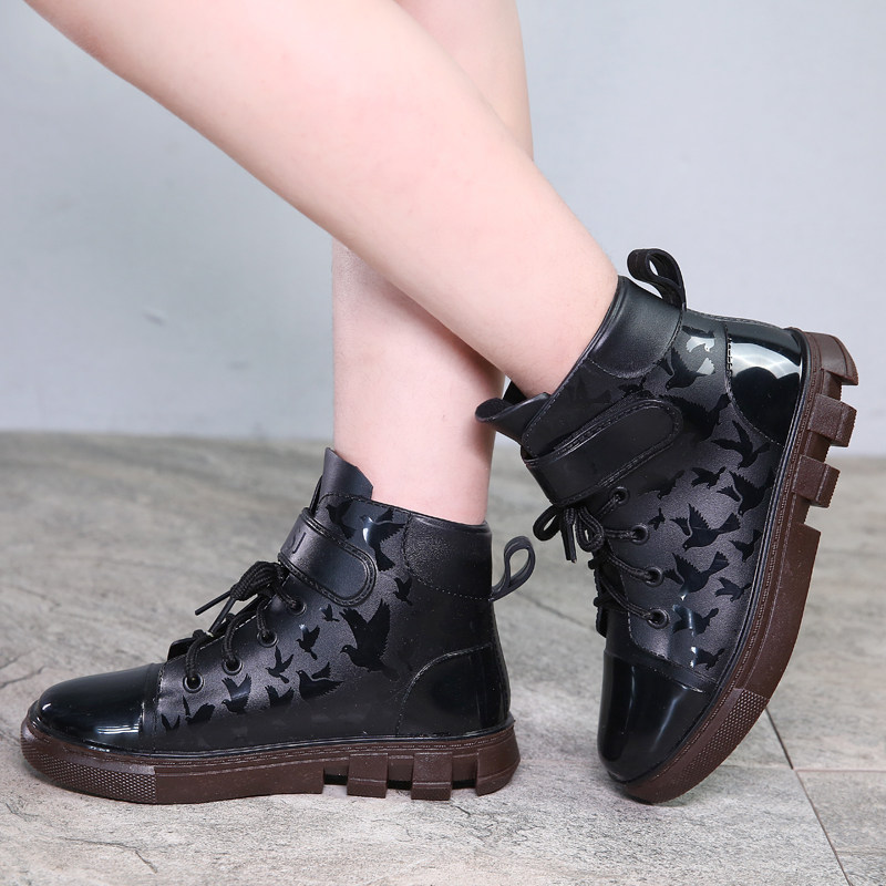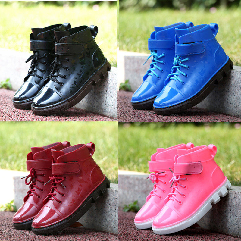 Children's rain boots boys and girls waterproof rain boots middle-aged children's autumn and winter students lace-up water shoes children's rubber shoes overshoes