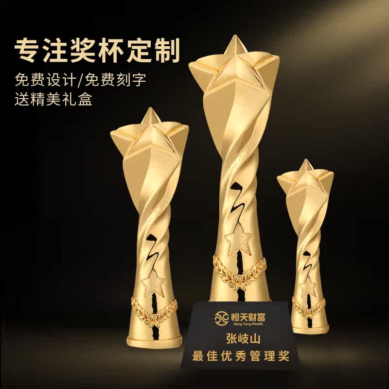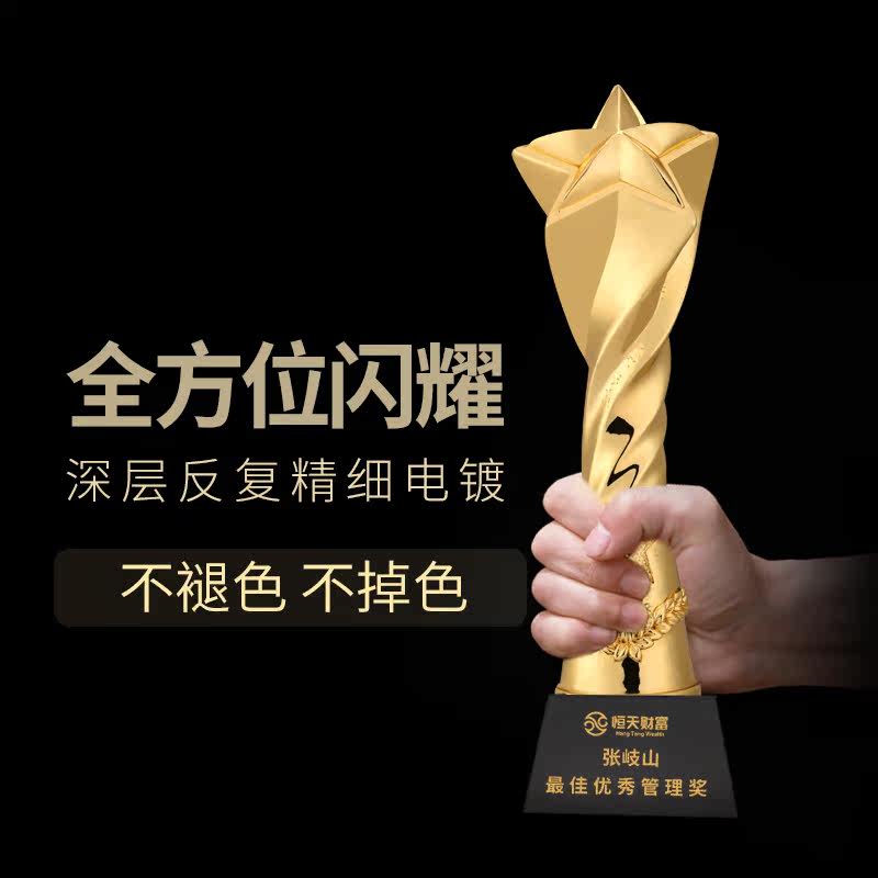 Creative resin gold-plated crystal trophy custom-made five-pointed star annual meeting outstanding elite staff award lettering
