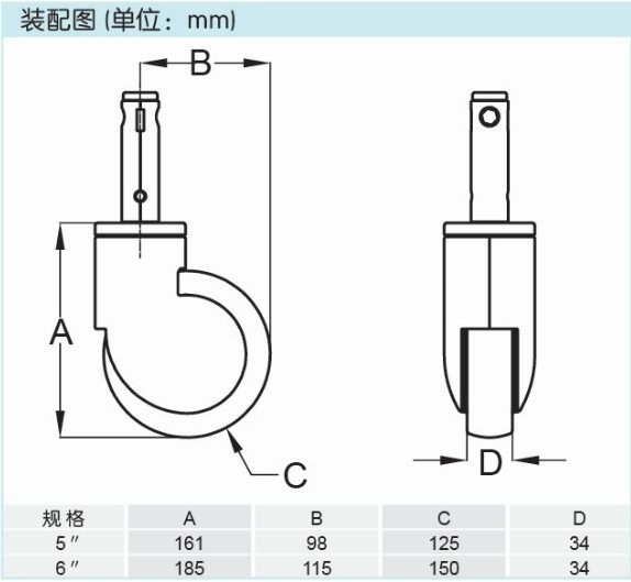 5-inch 6-inch 8-inch single-wheel long rod central control insertion rod universal brake wheel medical bed surgery car docking wheel
