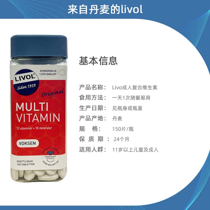 Denmark imported Livol11 adult health care products multivitamin trace element calcium tablets 150 tablets