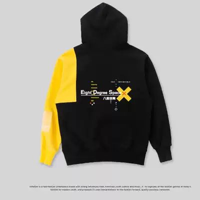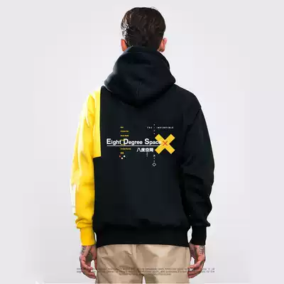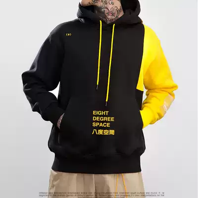 Jay Chou sweater"Octave space"autumn and winter contrast stitching thick T-shirt hooded plus velvet sweater