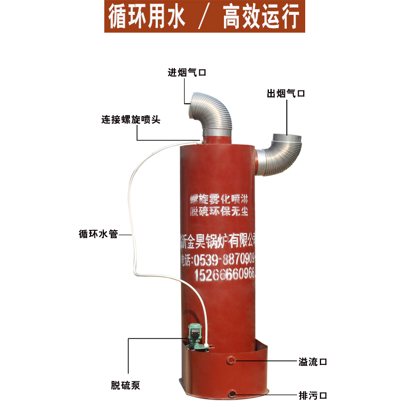 Biomass coal-fired boiler spiral integrated desulfurization spray smoke powder equipment dust removal water atomization spray dust collector