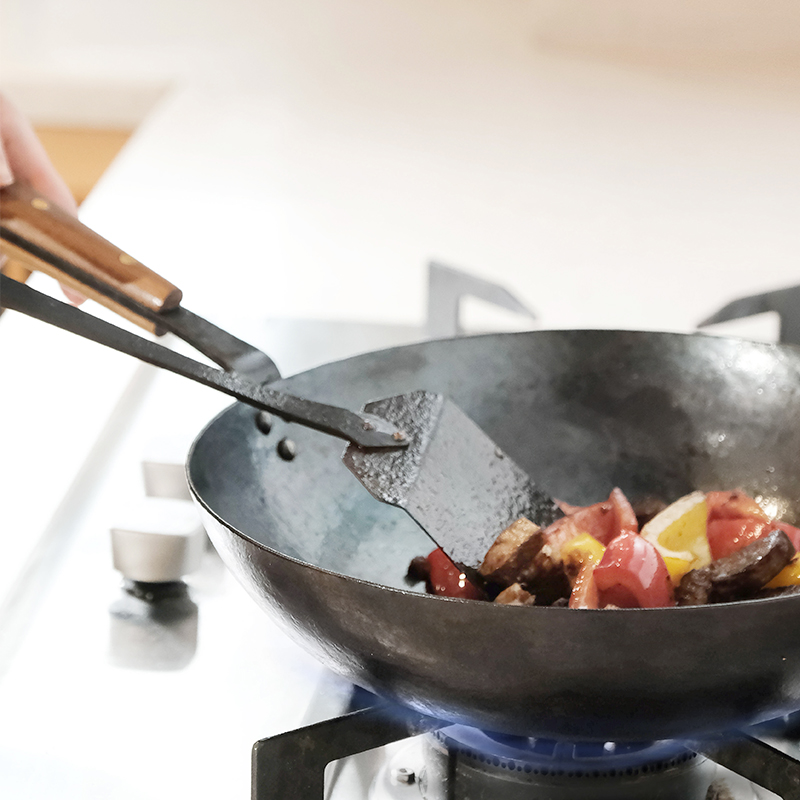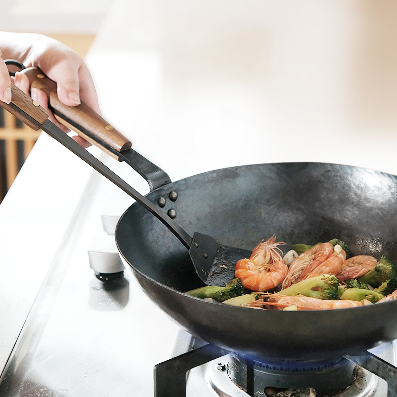 Touch-making frying pan hand forged with walnuts wood handle cooked iron No coating non-stick Home Gas gas cooker Gift Pan Shovel