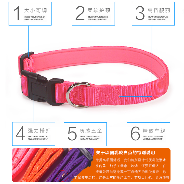 Comfortable nylon powder single collar Comfortable nylon orange single collar Comfortable nylon purple single collar Comfortable nylon blue single collar Comfortable nylon black single collar Comfortable nylon wine red single collar Comfortable nylon powder
