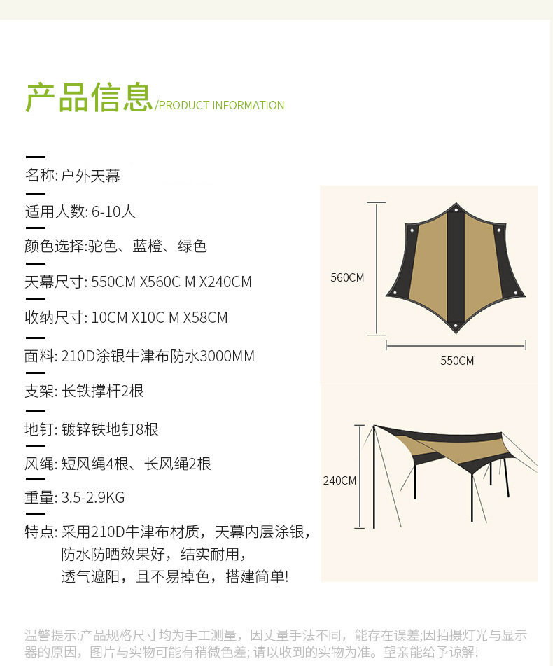 Outdoor Oversized Canopy Shelter Sunscreen Sunscreen Sunshade Camping Tent Skyscreen Manufacturer Direct with Sky Curtain Rod
