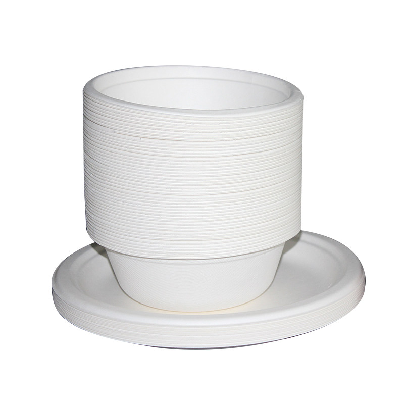 Disposable paper bowl paper plate thickened round environmental protection degradable lunch box outdoor barbecue household soup porridge paper bowl paper plate