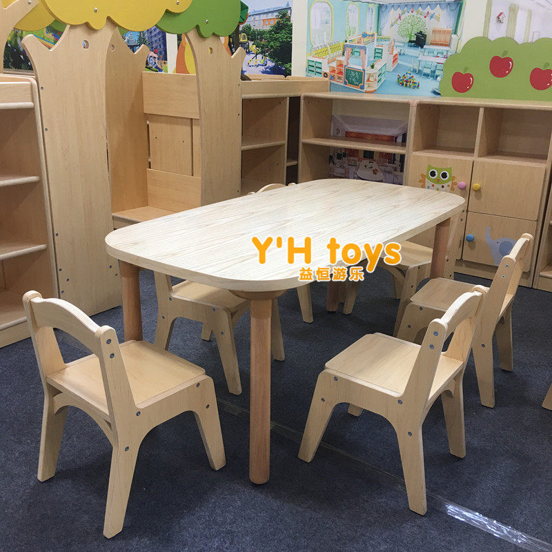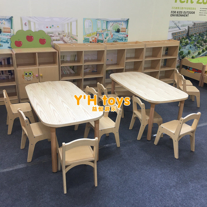New wood wax oil no paint eco-friendly rectangular table kindergarten table and chairs solid wood learning table early to teach long square 6 people table