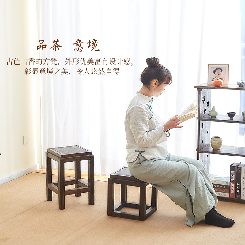 Solid wood stools New Chinese style shoes stool Home small bench Stool Square Bench Zen tea room Burmwood wood free of lacquer small short stool