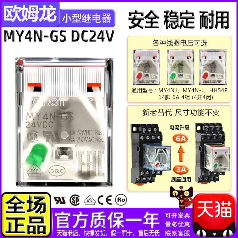 OMRONOMRON SMALL INTERMEDIATE RELAY MY4N-GS DC24V DC24V MY4NJ MY4NJ 24VDC One J