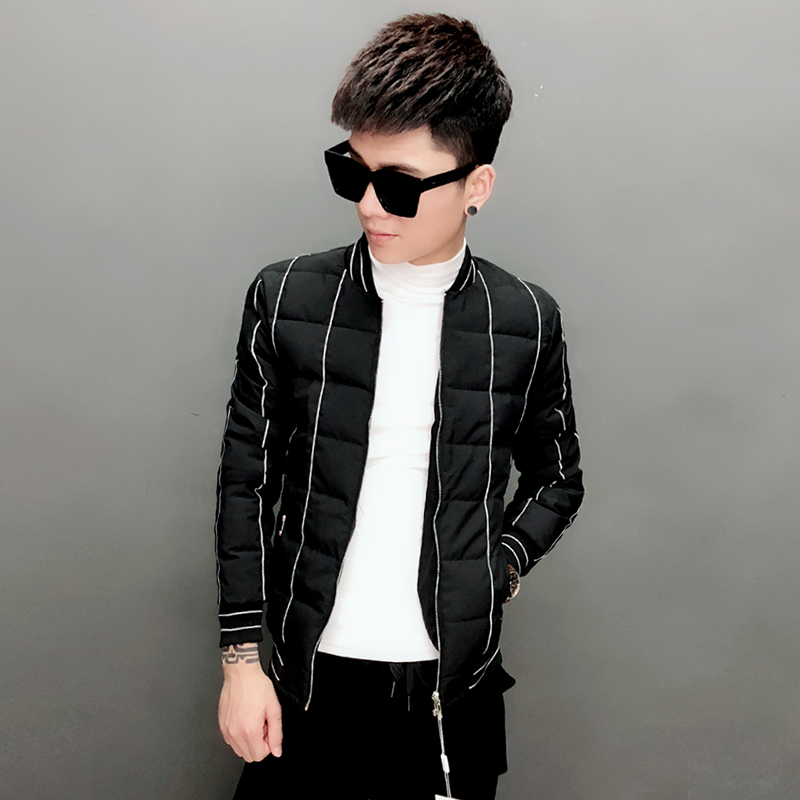 Men's winter youth Korean cotton-padded clothes social youth trend striped jacket spirit guy slim cotton-padded jacket men's clothes