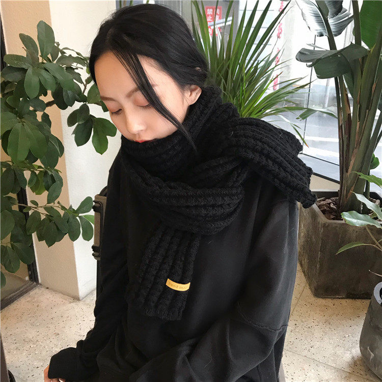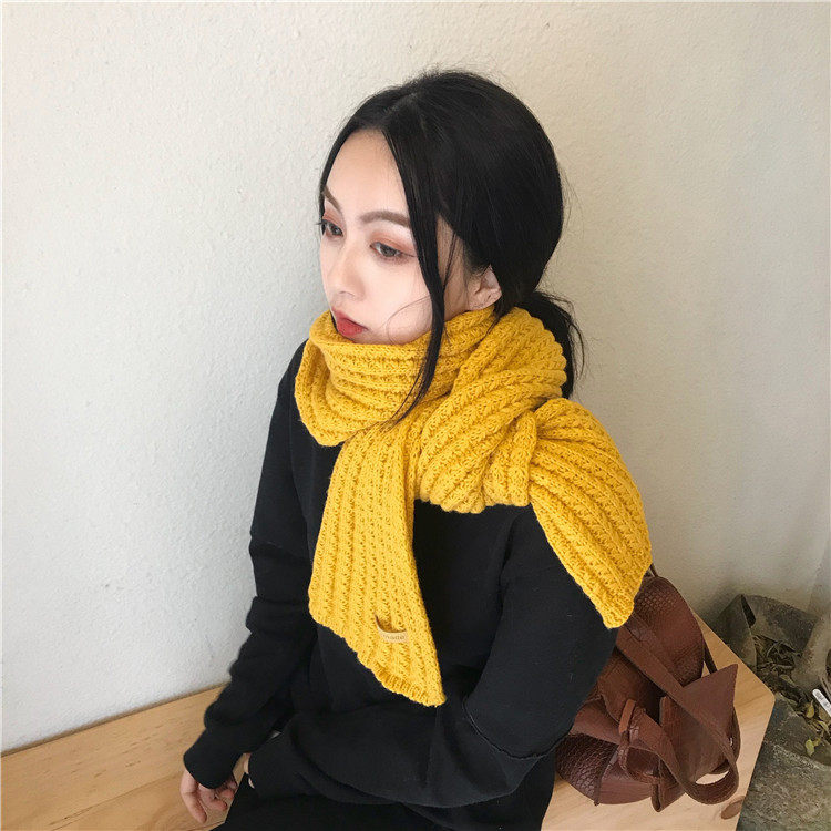Scarf women's autumn and winter Korean version of the student wild knitted long version thickened warm couple soft sister solid color wool collar