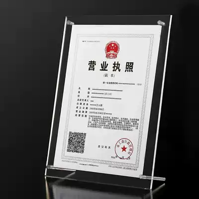 Acrylic glass crystal photo frame setting table business license frame honor original license frame newspaper frame hanging wall