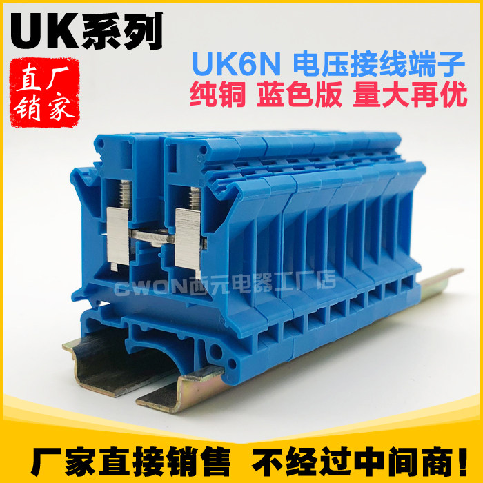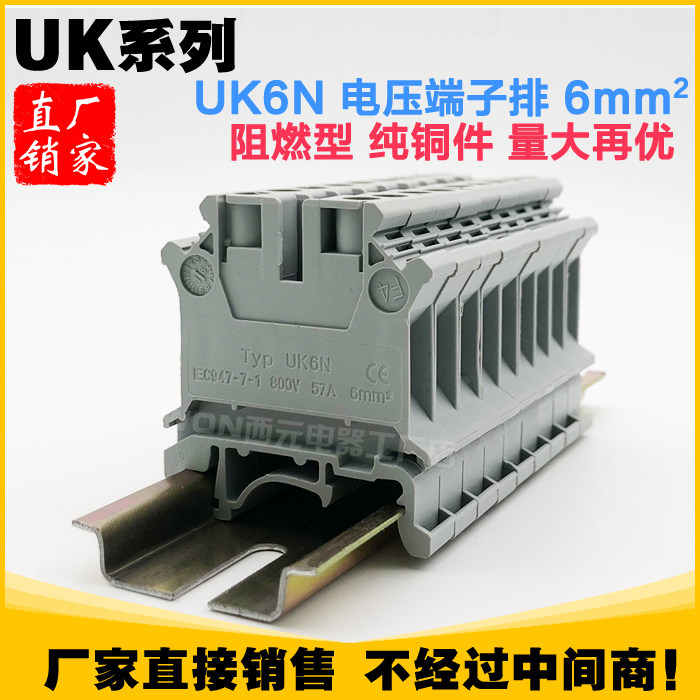 Pure copper rail type gray UK6N voltage terminal block terminal 6MM non-slip wire color custom