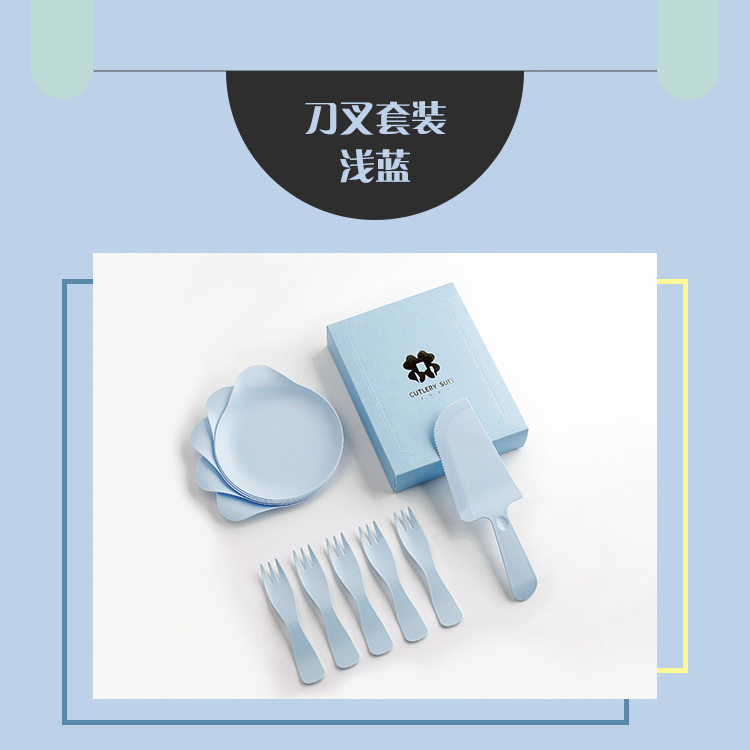 Cake box four-in-one birthday knife and fork tableware disposable cake knife and fork dish set water drop plate wave fork