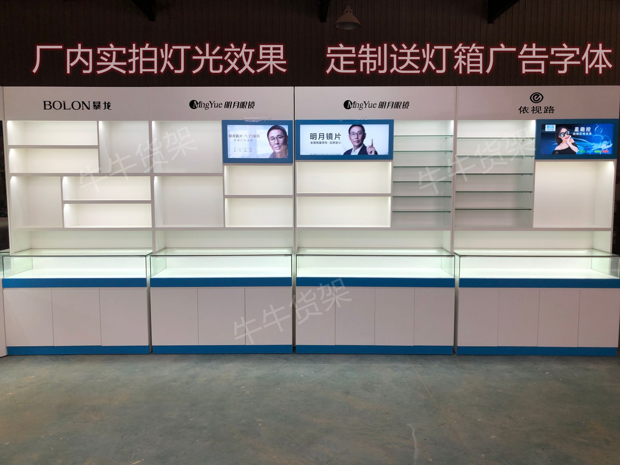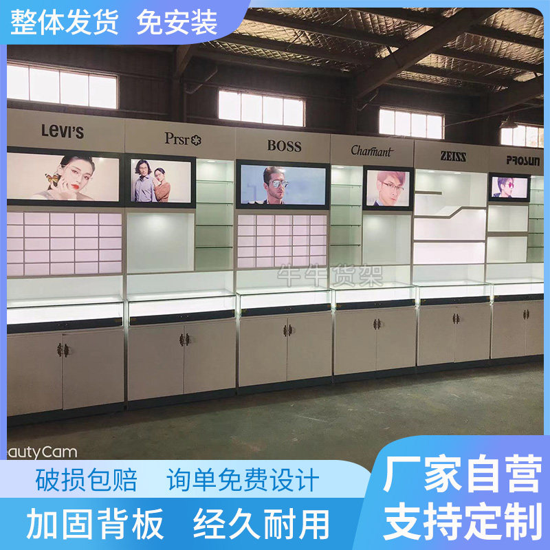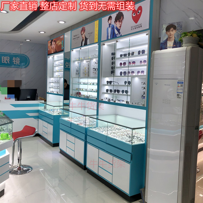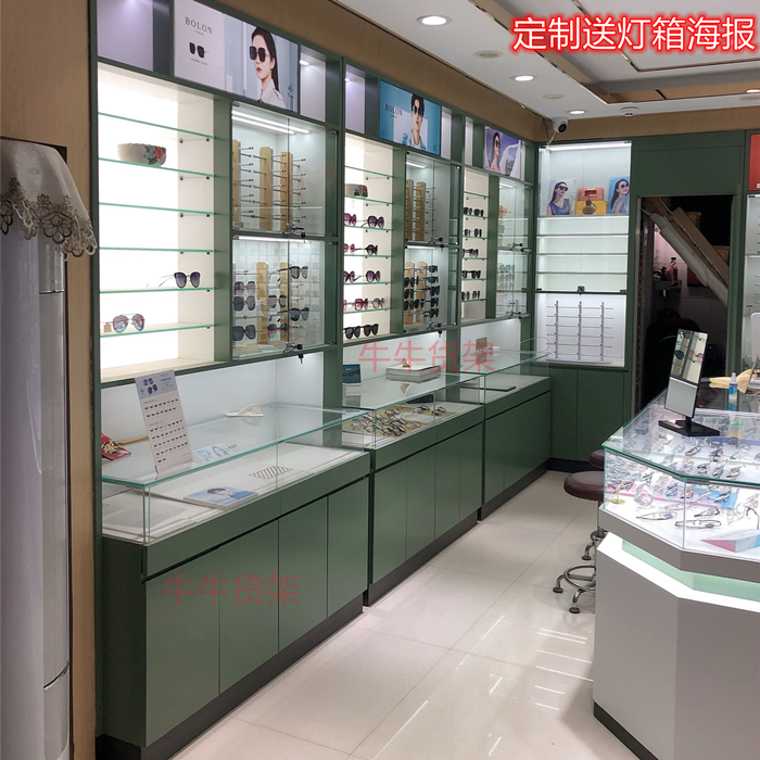 Glasses counter shelf solid wood glasses store display cabinet island counter wood grain ecological board cabinet whole store high cabinet customization