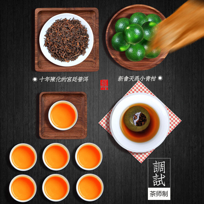 Sanxianfeng raw sun-dried new meeting small green citrus puer tea palace tangerine peel Yunnan ripe tea citrus orange puerh tea 500g