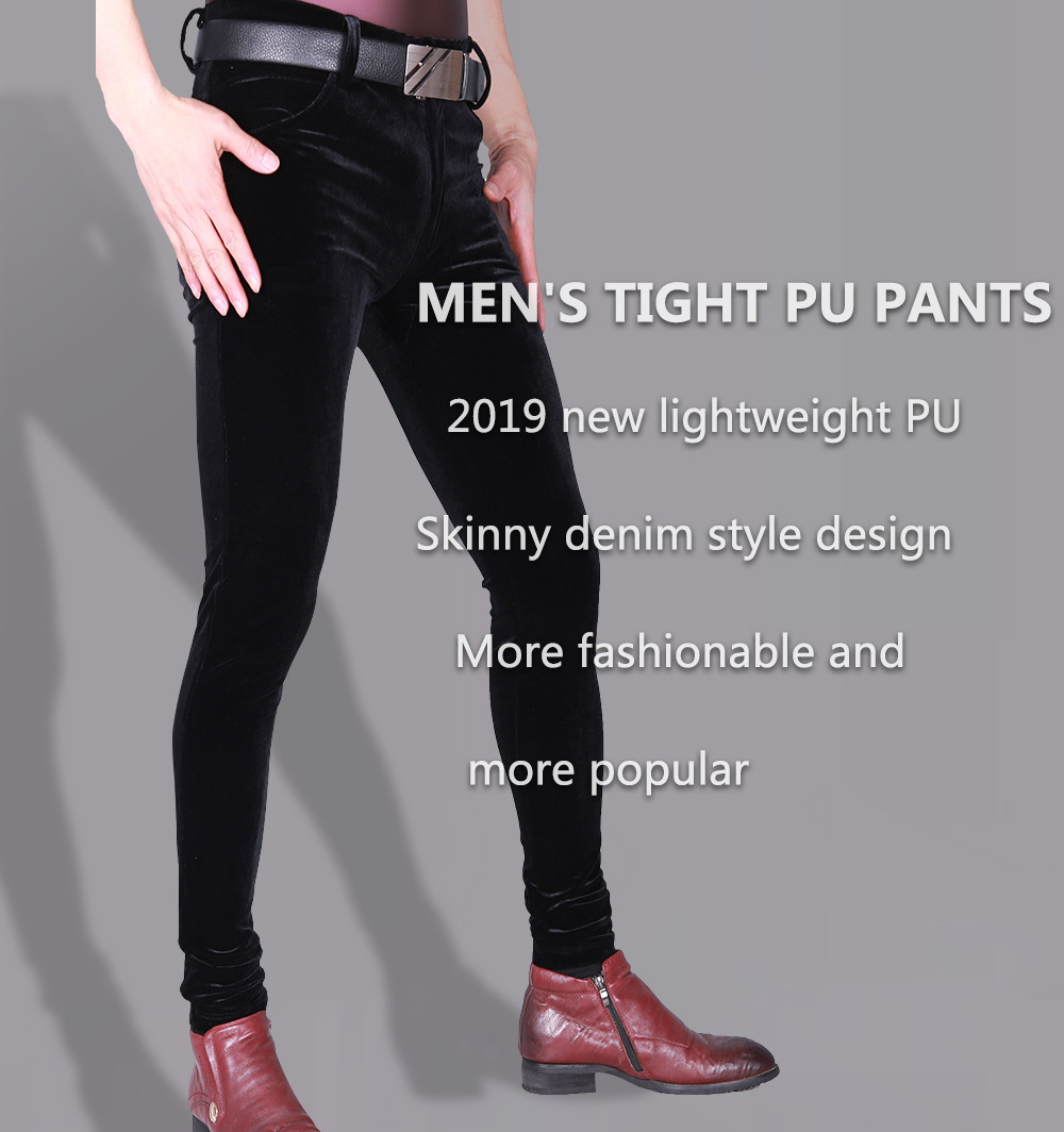 Men tight slim fit pants elastic body display slim pro-skin-free ironing fine suede Social little guys street patty bar Bunch Leg Pants