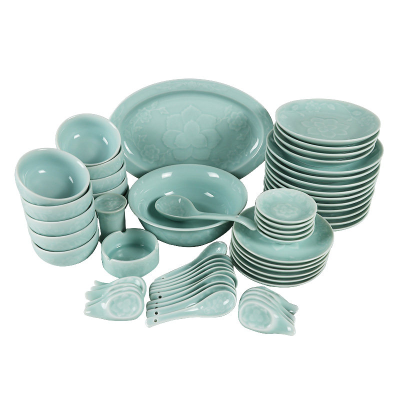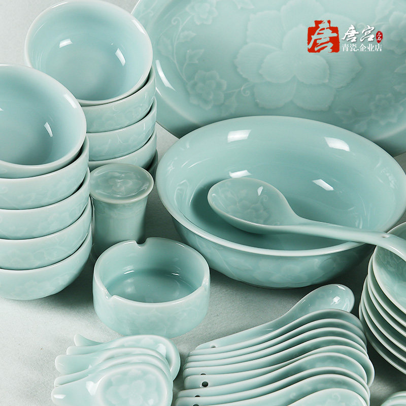 Dragon Quanqing Porcelain Tangle Branches Peony Plate Home Hotel Rice Bowls Plate Powder Green Reliquary Solid Desert Rose Cutlery