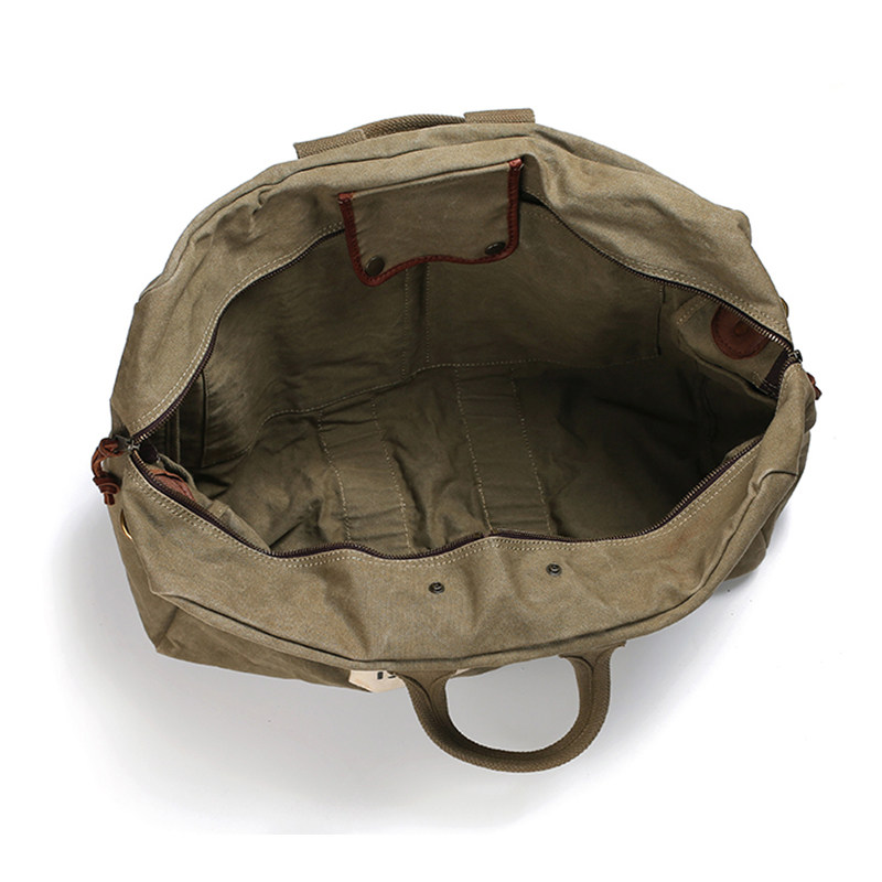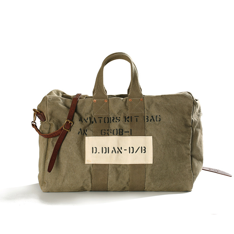 New vintage Aviator handbag Heavy duty made old canvas travel bag WWII Military backpack with cowhide large capacity