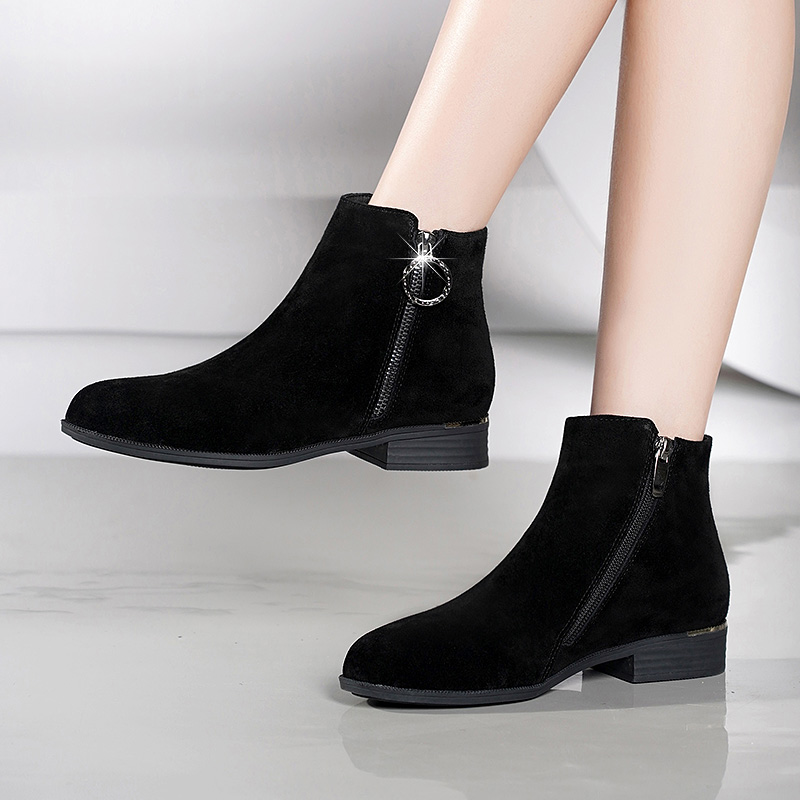Kintbury Leather Martins Women's England Plus Velvet Fall/Winter Boots Flat-Bottom Chelsea Boots Scrub Women's Boots