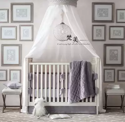 American solid wood carved bed mantle frame simple European retro old bed crown bedroom round children set decorative veil yarn shelf