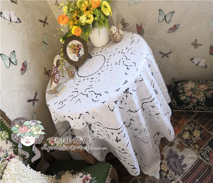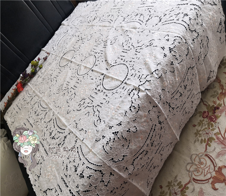 Delicate Collection Handmade @ Outlet European Original Single White Linen Fabric Mercerized hand buckle embroidered square table cloth