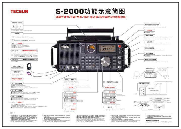Tecsun Desheng S-2000 FM Medium Wave Shortwave-Air Band Radio Black Tuning Desktop
