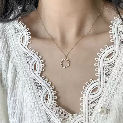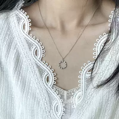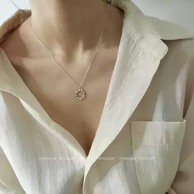 Sugar fondhouse S925 sterling silver fashionable round piece choker ins Wind hollow beating round retro pendant necklace