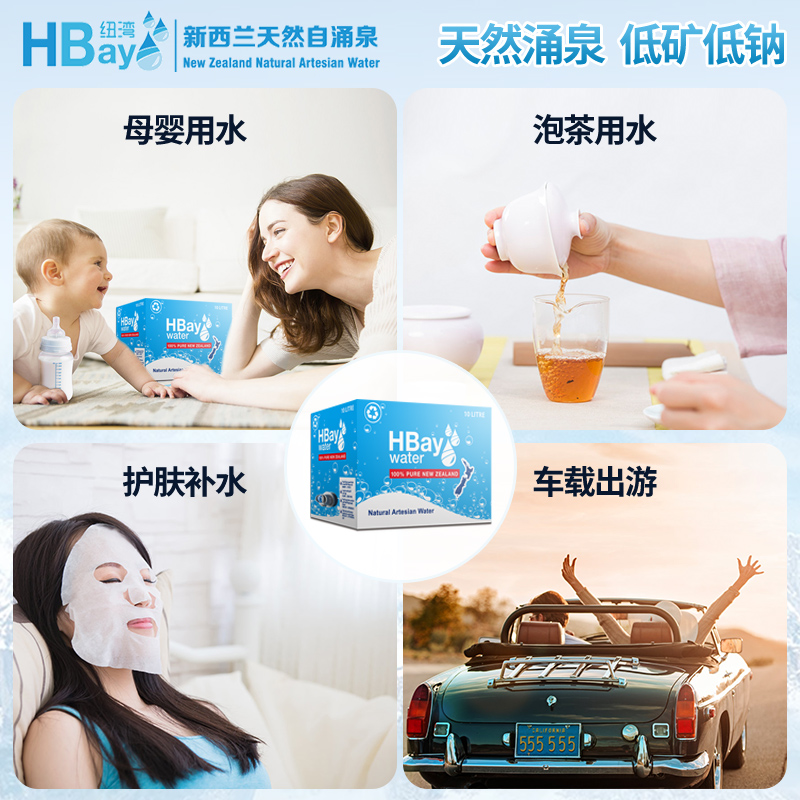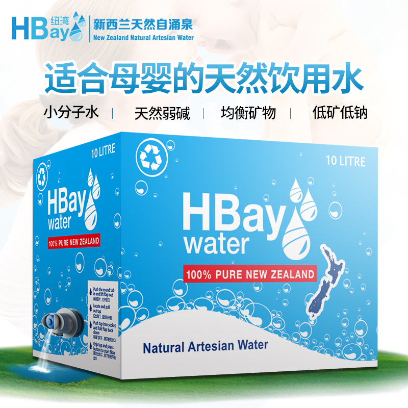 HBay New Bay Baby water Imported bagged drinking water New Zealand natural weak alkali maternal and infant mineral water 10L*6 boxes
