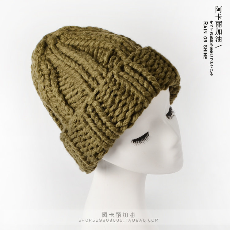 European and American yuan single self-reserved style ~ Fashionable rate wool winter warm wool hat hand-woven concave shape