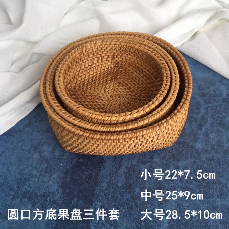 Square bottom fruit plate (small) 20 * 7cm square bottom fruit plate (three-piece set) square bottom fruit plate (large) 26 * 9cm square bottom fruit plate (medium) 23 * 8cm hand woven with 1cm left