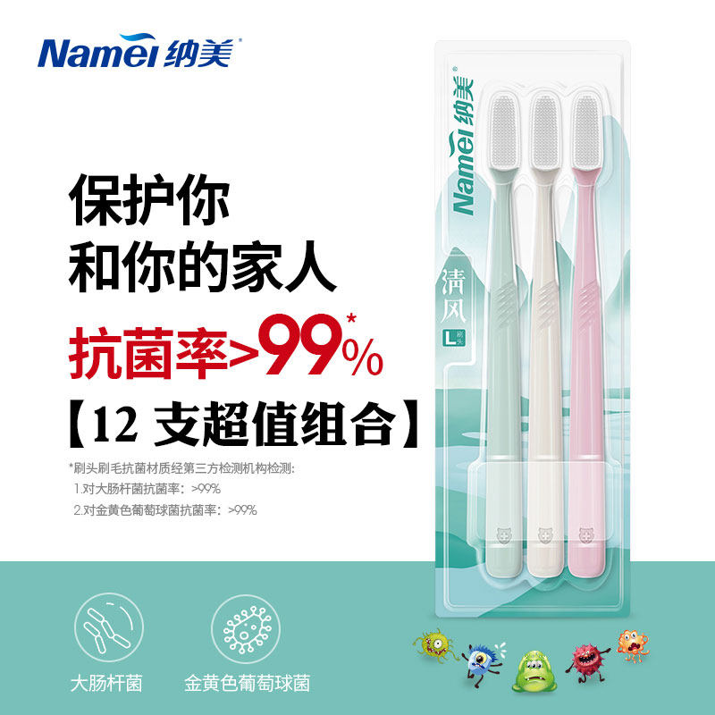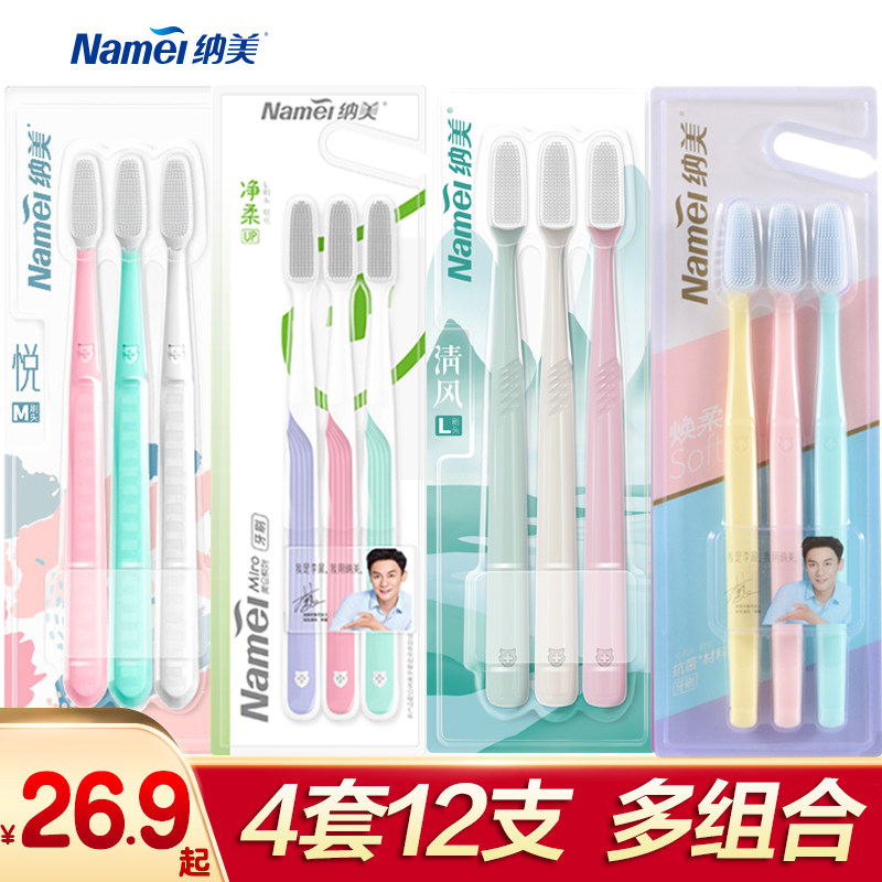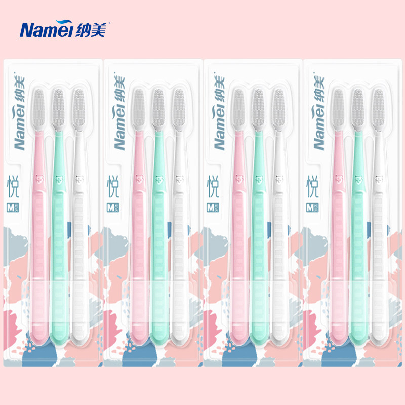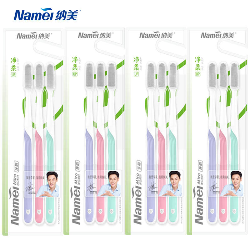 Nami Nano Adult Toothbrush Home Soft Gel Soft Hair (Yue M Net Soft Combination 4 Sets of 12 Sticks)